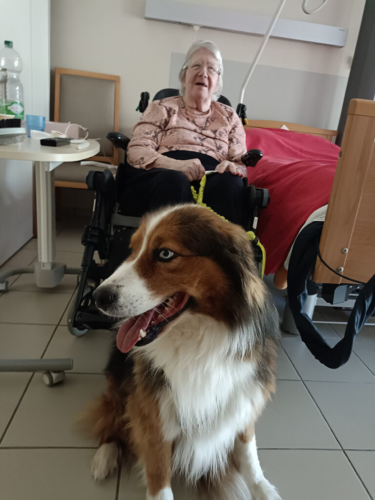 Lors de la visite de Mylo, nous avons fait plusieurs exercices avec lui comme le rappel, nous l’avons brossé, promené, etc…