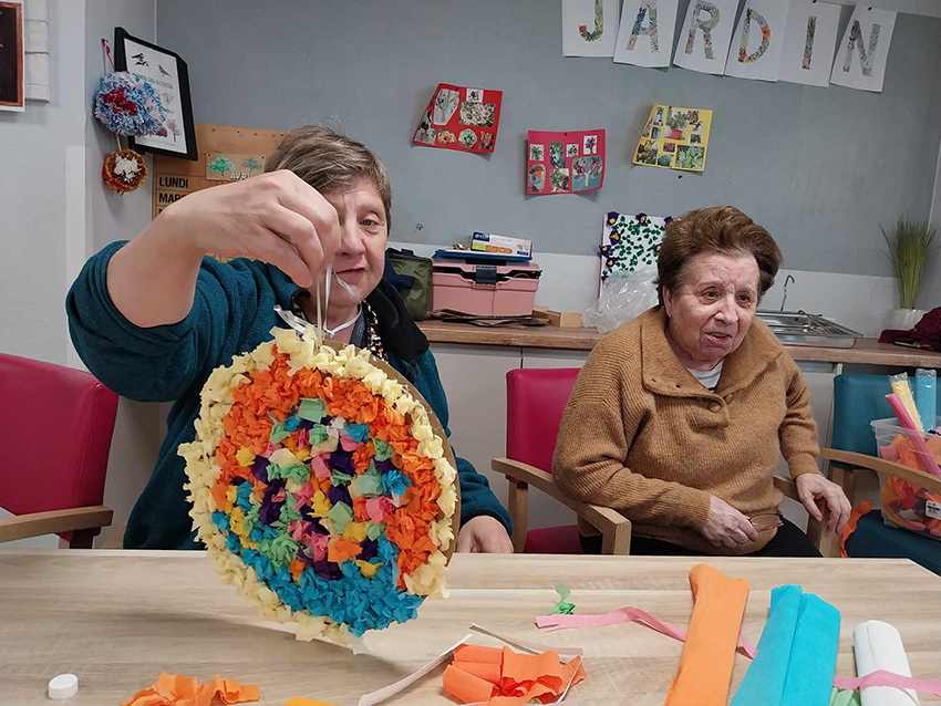 Véronique et Margareth proposent un accompagnement spécifique au salon des jardins.Ce mois-ci, elles ont proposés de la cuisine aux résidents, des activités manuelles ou encore des repas thérapeutiques à l’extérieur.
