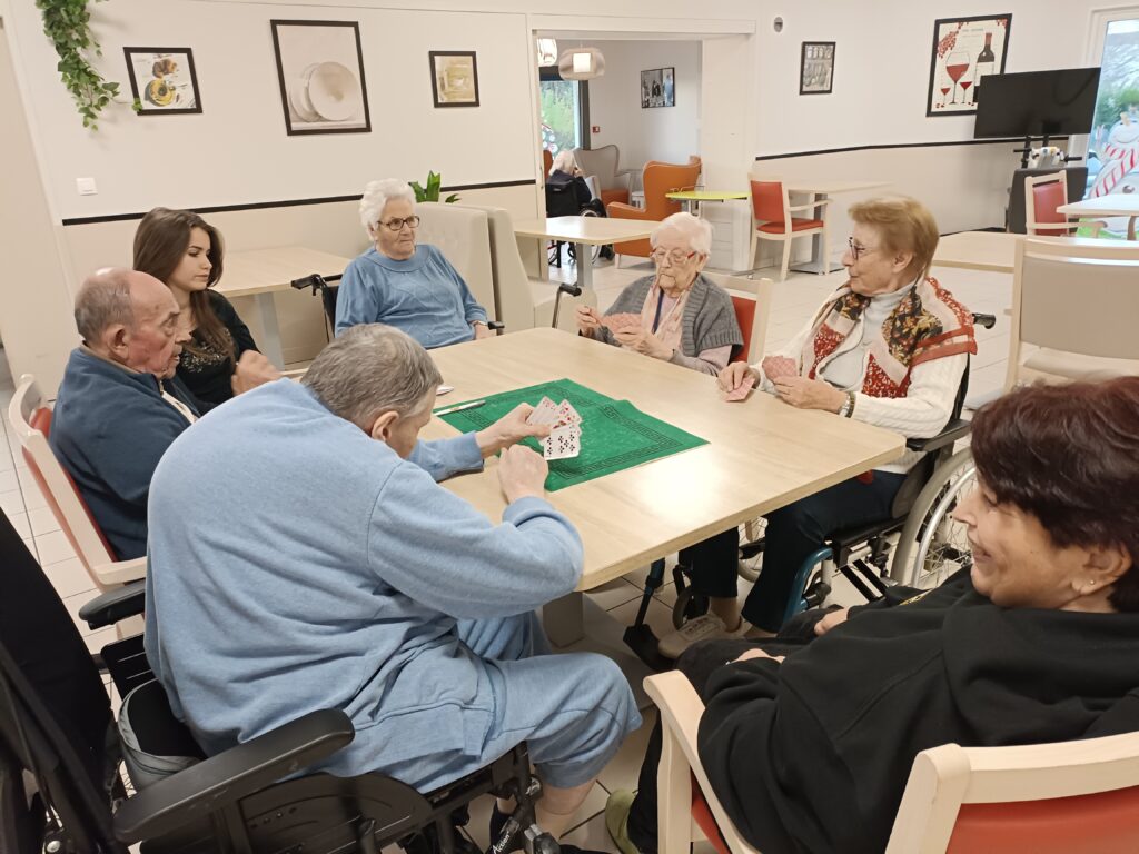 Tous les après-midis, différents groupes de résidents se réunissent pour faire une partie de belote. Le rendez-vous des fidèles se situe vers 16h30 après le goûter. N’hésitez pas à venir vous retrouver pour passer un moment d’échange et de jeu.