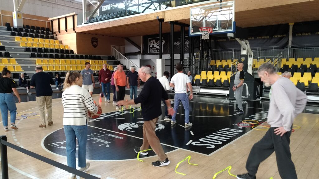 Les résidents ont eu la chance d’être accueillis par le Stade Rochelais pour une séance de Basket Santé conviviale et adaptée. Guidés par les encadrants du club, ils ont participé à des exercices ludiques : passes, tirs, coordination et petits défis collectifs.