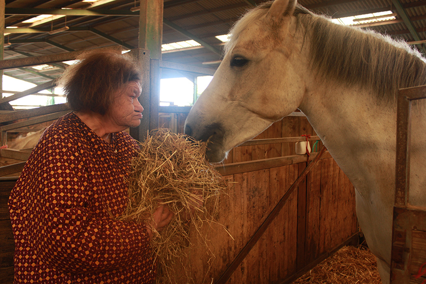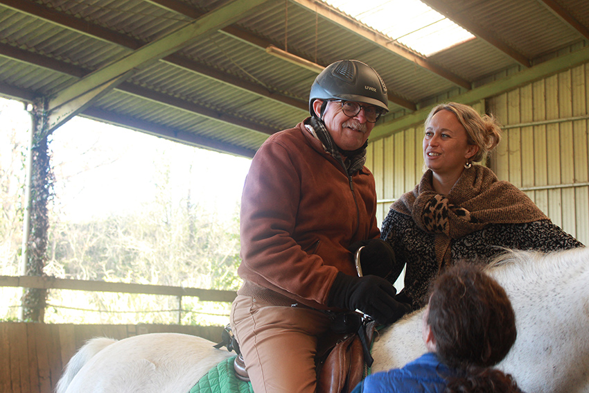 Les résidents prennent soin de l’animal, le guident sur différents exercices et ont même la possibilité de monter sur une jument.