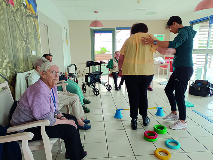 L’association Siel Bleu, éducateurs sportifs propose des activités sportives pour les résidents souhaitant travailler sur la prévention des risques de chutes. De la gymnastique debout est notamment proposée.