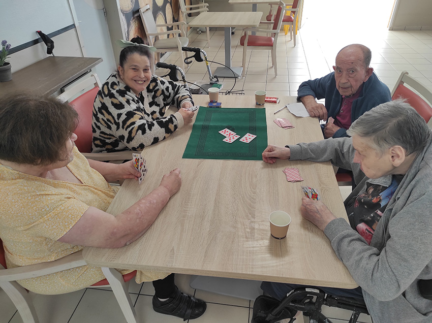 Régulièrement des résidents se réunissent afin de faire des parties de jeux de société. Des moments de convivialité, de partage et de légèreté le temps d’une partie de jeu.