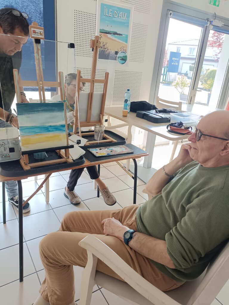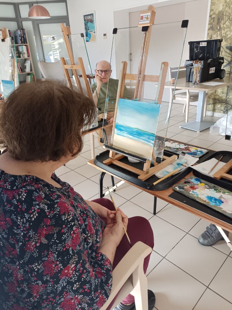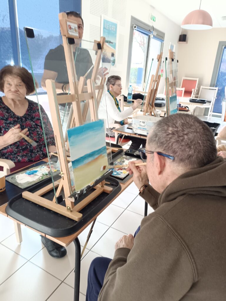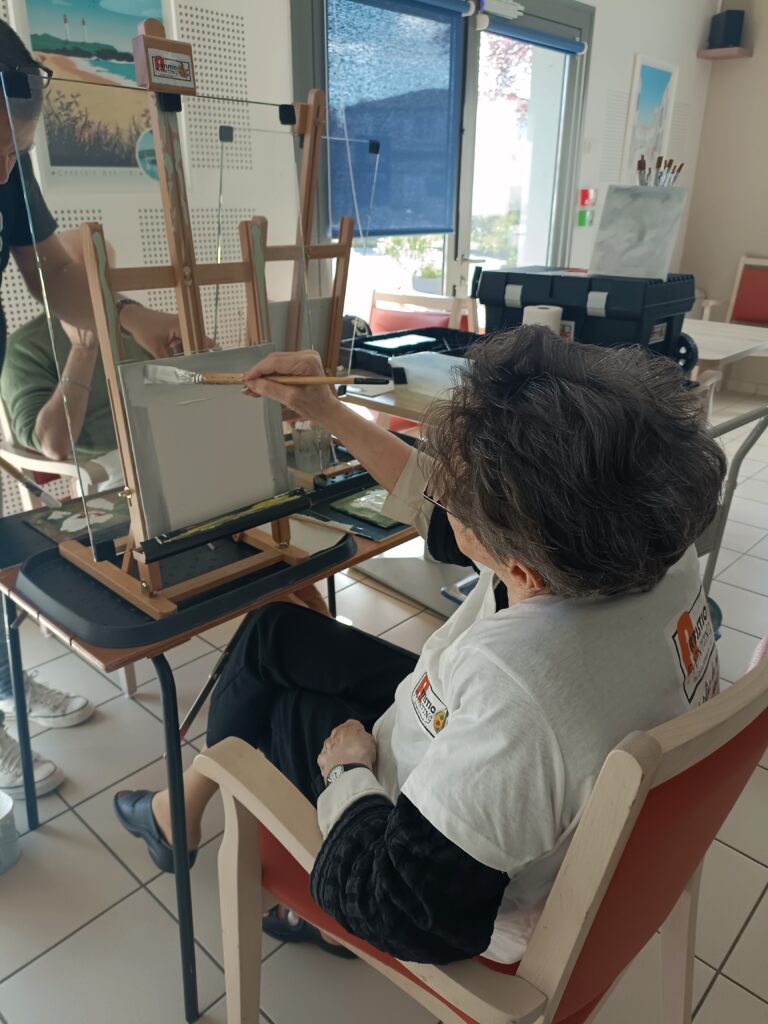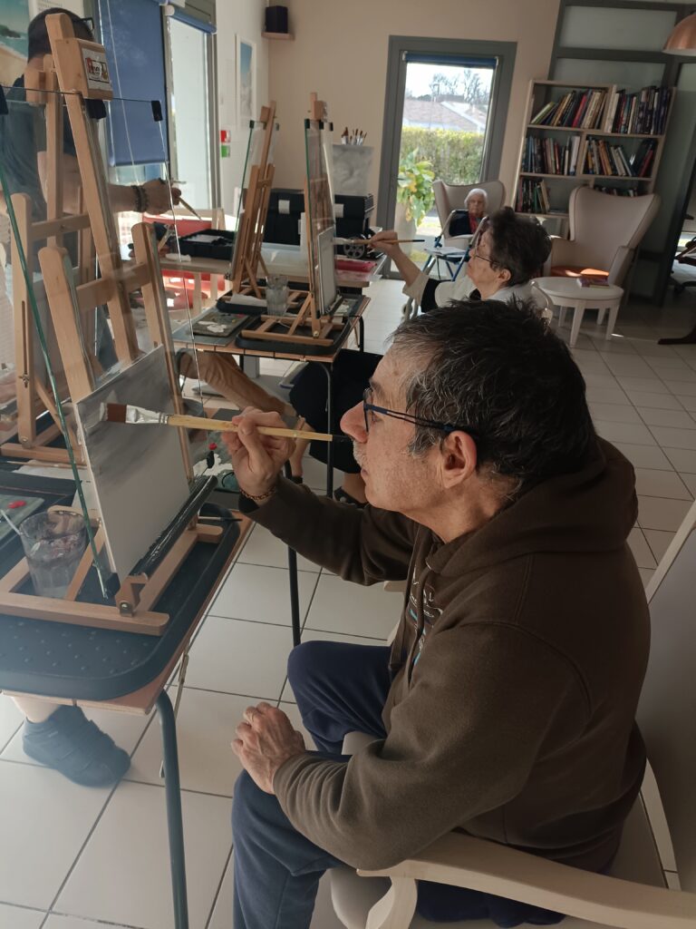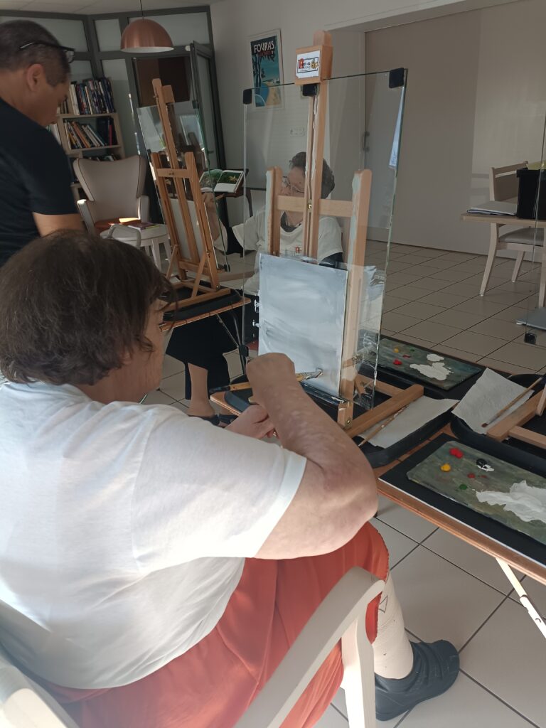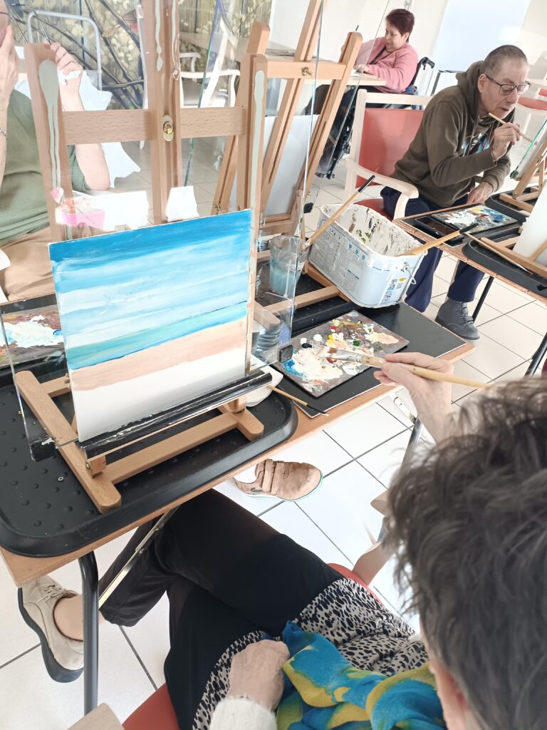 Les derniers ateliers peintures ont eu lieu avec Eric Romenteau. Très apprécié par les résidents, cette activité permet de valoriser leur travail avec des toiles magnifiques.Il reviendra au mois d’octobre pour proposer des peintures sur l’automne.