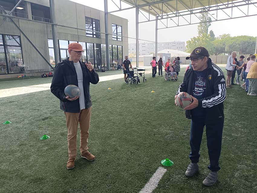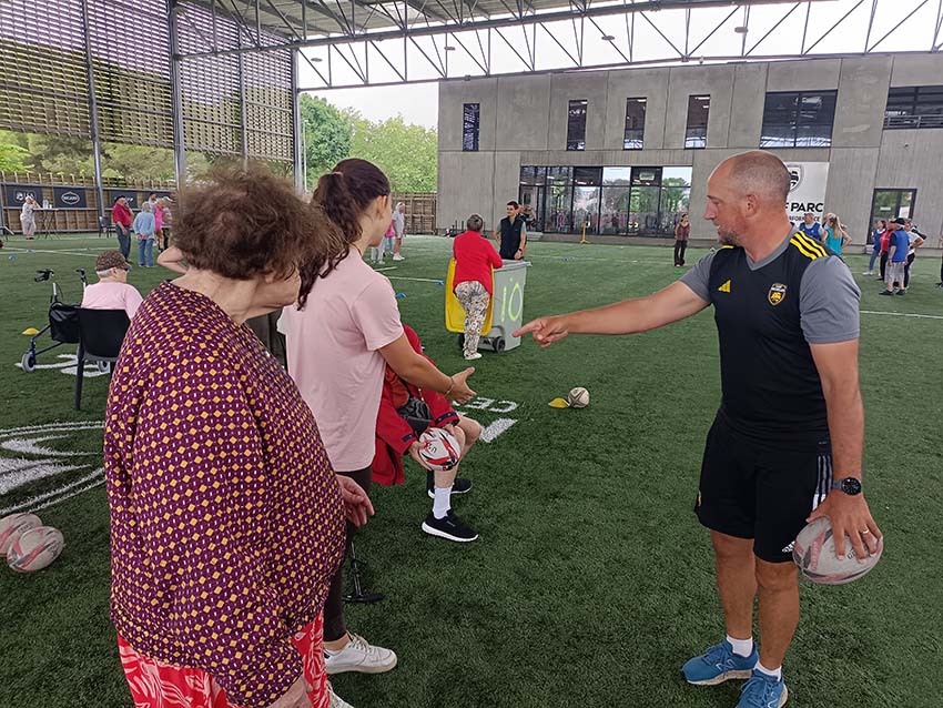 A l’initiative du Stade Rochelais, un partenariat a été créé avec la section Rugby Santé afin de se retrouver pour un entraînement de rugby toucher ! De l’extérieur, c’est un entraînement, on ne peut plus classique avec un échauffement, quelques exercices et des petites confrontations pour finir.