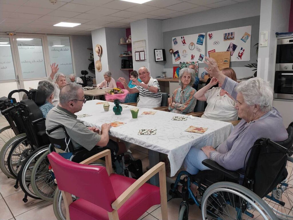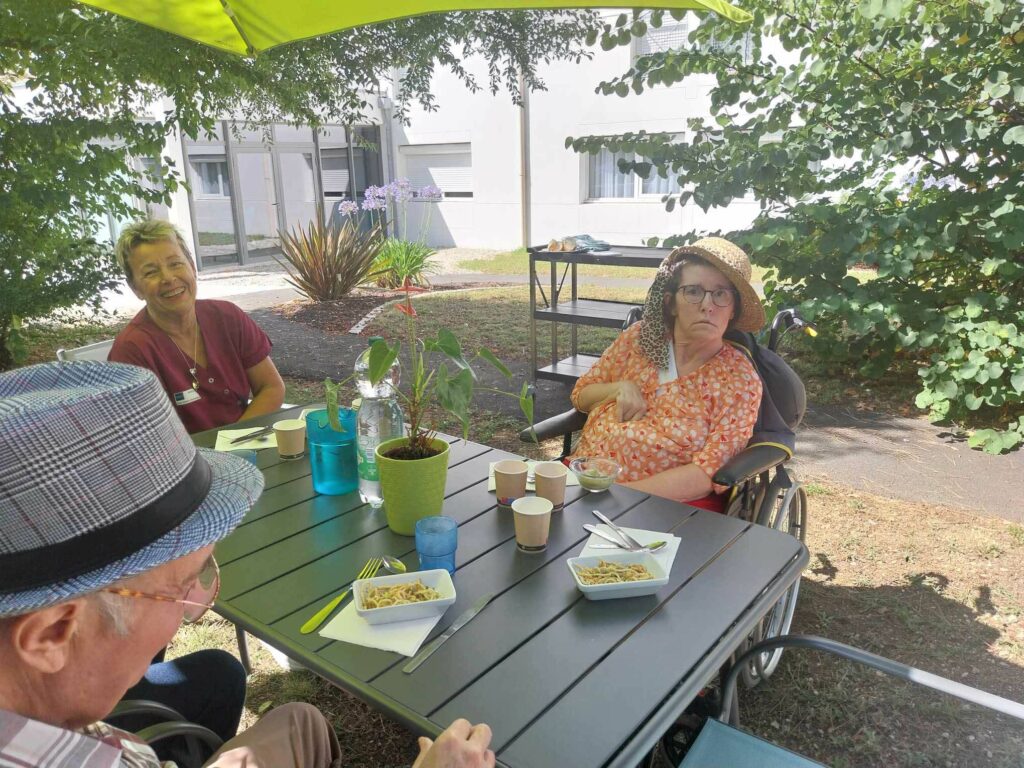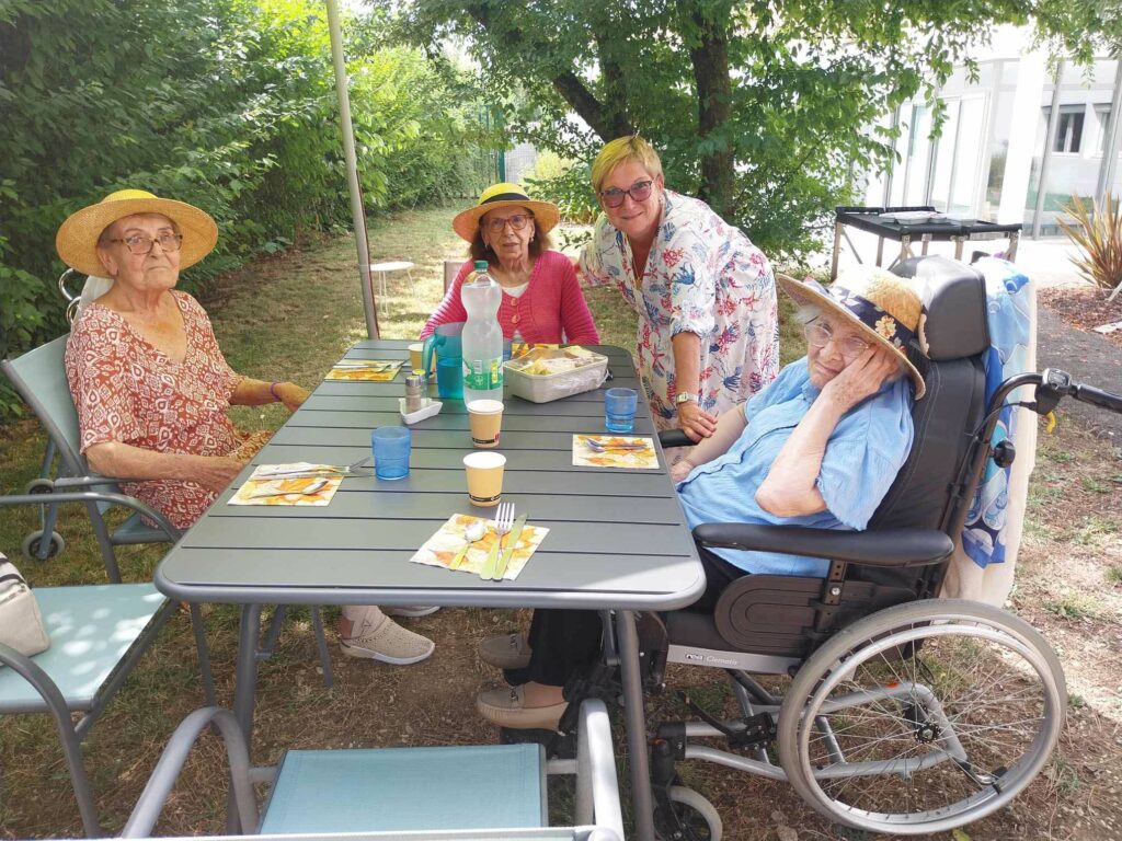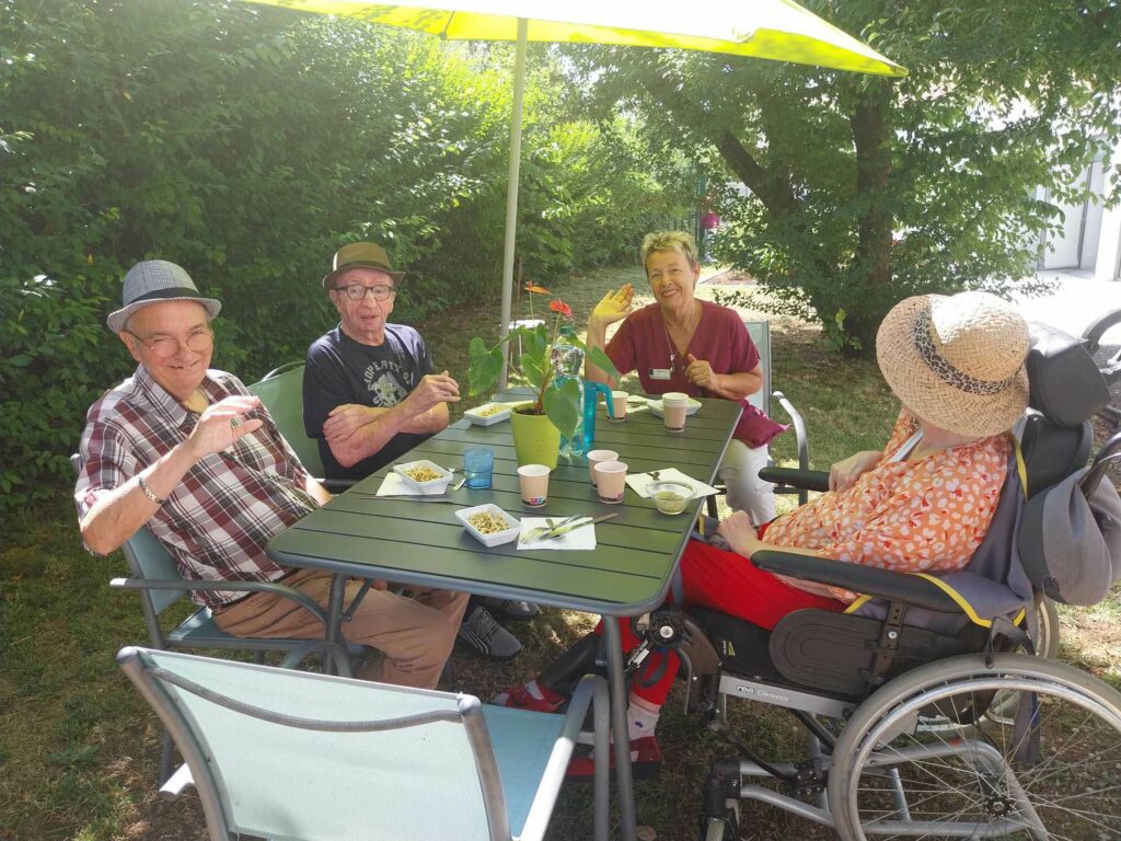 Véronique et Margareth proposent un accompagnement spécifique au salon des jardins.Ce mois-ci, elles ont proposés de la cuisine aux résidents, des activités manuelles ou encore des repas thérapeutiques à l’extérieur !