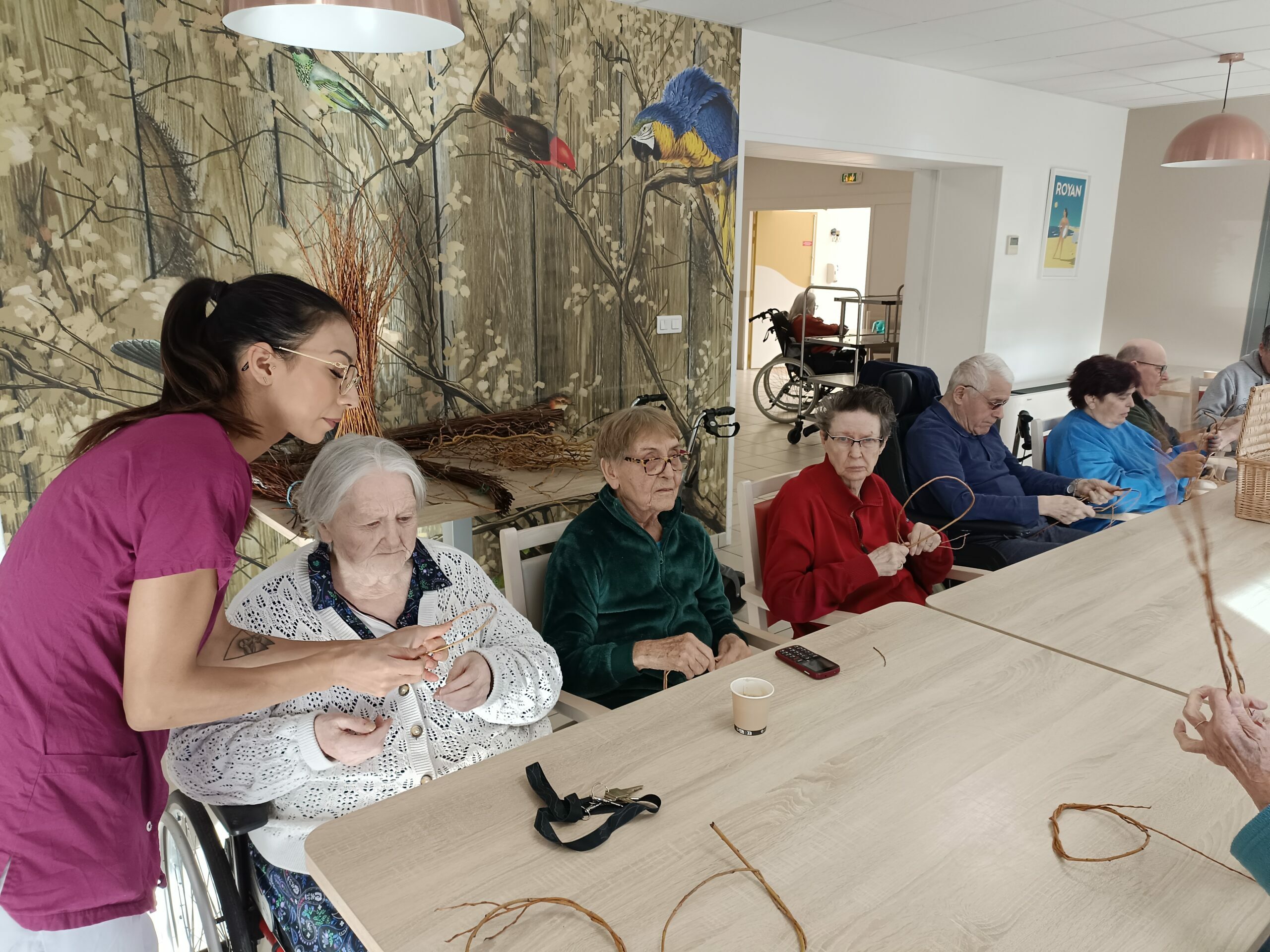 Katherine Lantin, intervient deux fois par mois, pour proposer un atelier vannerie....