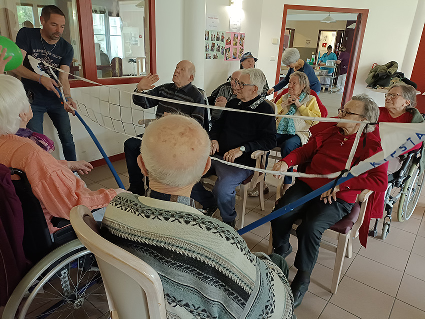 Laurent, animateur de l’EHPAD de Charron, nous a invité (ainsi que les établissements de Marans et Saint-Rogatien) à un volley inter-EHPAD.